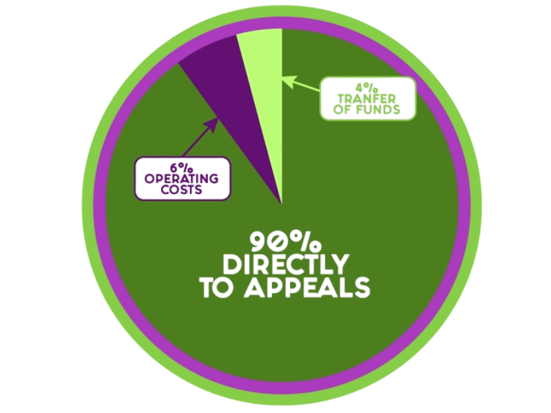 £0.90p of every pound donated goes to the appeals you select.